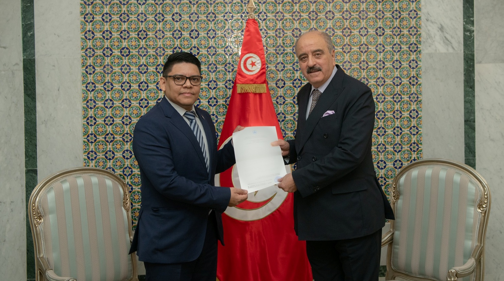 تسلّم محمد علي النفطي وزير الشؤون الخارجية والهجرة والتونسيين بالخارج، اليوم الجمعة 16 جانفي 2026، أوراق اعتماد سفير جمهورية نيكارغو الجديد لدى تونسCarlos Eduardo Diaz Moreira مع الإقامة بالجزائر.