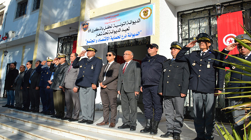 تحت شعار "الديوانة درع لحماية الإقتصاد والمجتمع" إنتظم صباح اليوم السبت 13 ديسمبر 2025 بمقر ولاية الكاف موكب الإحتفال الجهوي بالذكرى 69 لتونسة الديوانة وذلك تحت وقع النشيد الوطني ورفع الراية التونسية.