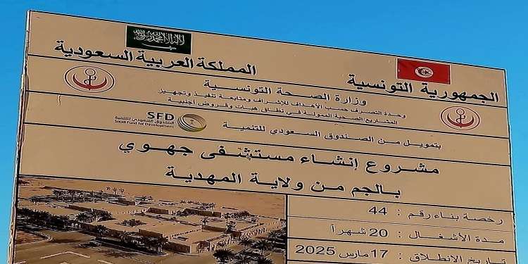 تقدّمت أشغال مشروع المستشفى الجهوي بالجم " صنف ب" من ولاية المهديّة بنسبة 25 بالمائة وفق ما أكده المهندس المعماري المشرف على المشروع نبيل عمر لوكالة تونس افريقيا للأنباء .