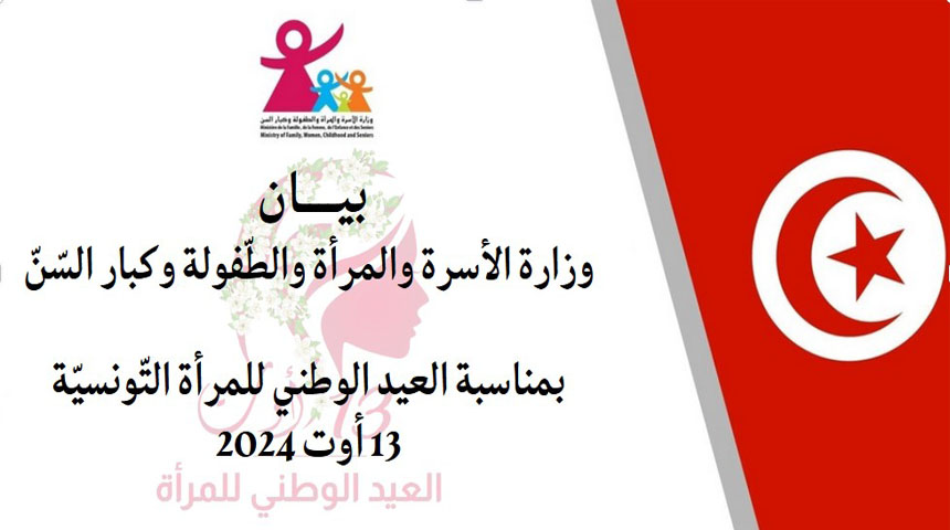وإذ تهنّئ وزارة الأسرة والمرأة والطّفولة وكبار السّنّ بهذه المناسبة سائر التّونسيّات والتّونسيين، فإنّها تعرب عن اعتزازها بما بلغته المرأة التّونسيّة داخل الوطن وخارجه من مراتب متقدّمة، وتؤكّد حرص الدّولة على مواصلة الانتصار لحقوق المرأة الاقتصاديّة والاجتماعيّة والثّقافيّة ودعم مكاسبها وتقوية صمودها وتعزيز حظوظها في كنف المساواة وتكافؤ الفرص.