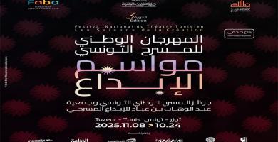 انطلاق فعاليات مهرجان "مواسم الإبداع"في دورته الثالثة بين ولايتي توزرو تونس يوم24 اكتوبر الحالي