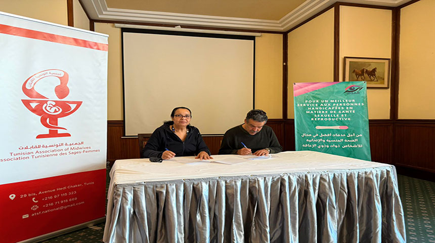وقّعت الجمعية التونسية للقابلات وجمعية "إبصار" لتثقيف وترفيه ذوي الإعاقة، اتفاقية شراكة تهدف إلى تحسين الخدمات المقدمة لذوي الاعاقة في مجال الصحة الإنجابية.