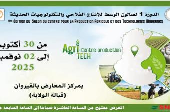 الدورة الاولى لصالون الوسط للإنتاج الفلاحي والتكنولوجيات الحديثة من 30 أكتوبر إلى 02 نوفمبر 2025 بالقيروان