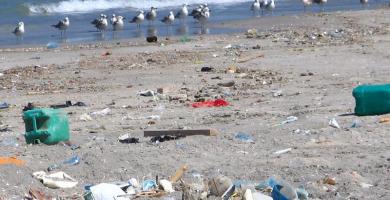 أﻛﺜﺮ ﻣﻦ 84 بالمائة ﻣﻦ اﻟﻨﻔﺎﻳﺎت في البيئة اﻟﺴﺎﺣﻠﻴﺔ هي ﻣﻦ البوليمرات الاﺻﻄﻨﺎﻋﻴﺔ وﺧﺎﺻﺔ اﻟﺒﻼﺳﺘﻴﻚ