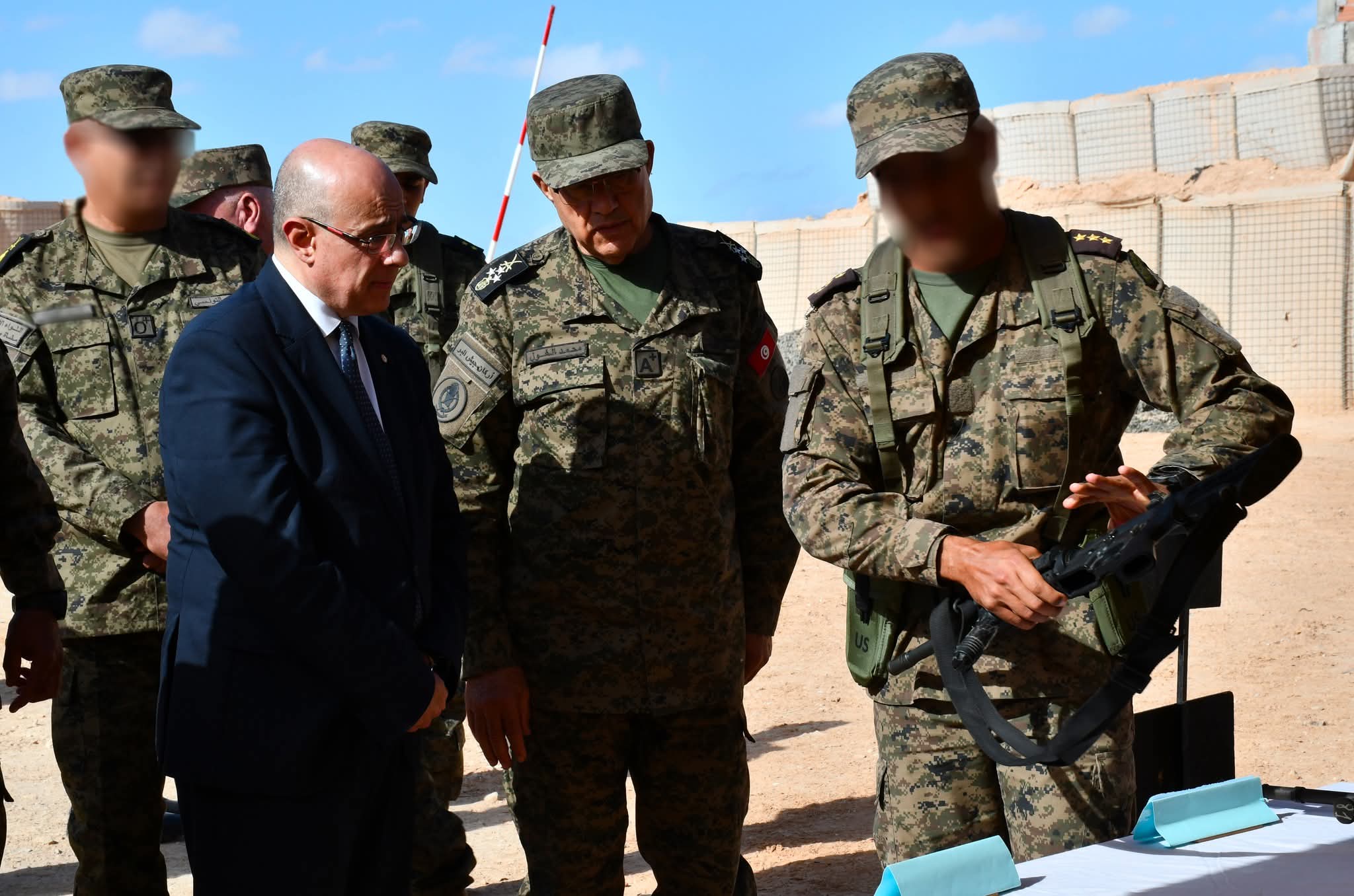 واطّلع الوزير، على مختلف المهام التي يضطلع بها الفيلق الأوّل الترابي الصحراوي برمادة (ولاية تطاوين) والكتيبة الترابية بالزواميخ (ولاية مدنين)، ودور مختلف التشكيلات العاملة بالميدان، وأهميّة الترتيبة الدفاعيّة ومنظومة المراقبة الإلكترونيّة في حماية الشريط الحدودي، والتصدّي لخطر الإرهاب والجريمة المنظمة العابرة للحدود، والحدّ من عمليّات التهريب واجتياز الحدود خلسة.
