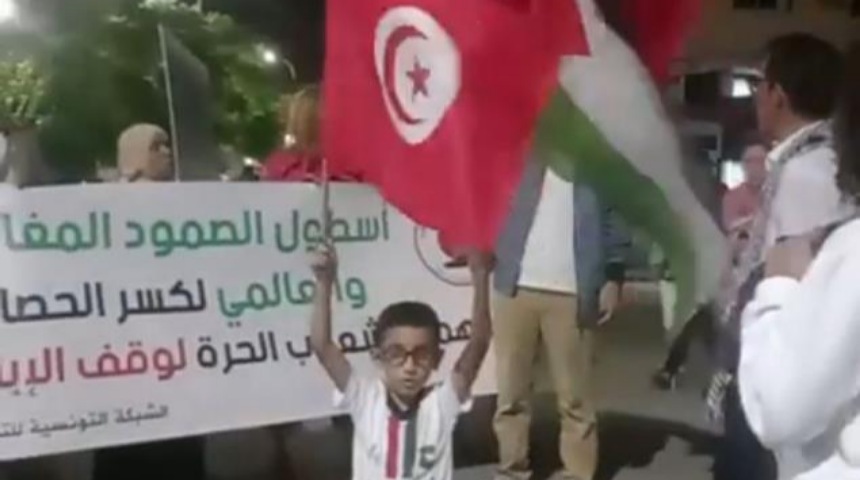 وقفة تضامنية مع المشاركين في أسطول الصمود وسط مدينة بنزرت