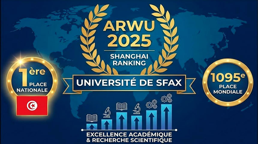 احتلت، جامعة صفاقس، المرتبة الاولى وطنيا وال1095 عالميا في تصنيف شنغهاي للجامعات العالمية لسنة 2025.